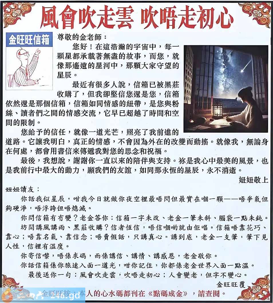 2025115期115期:金旺旺信箱彩民推荐→→《風會吹走雲 吹唔走初心》