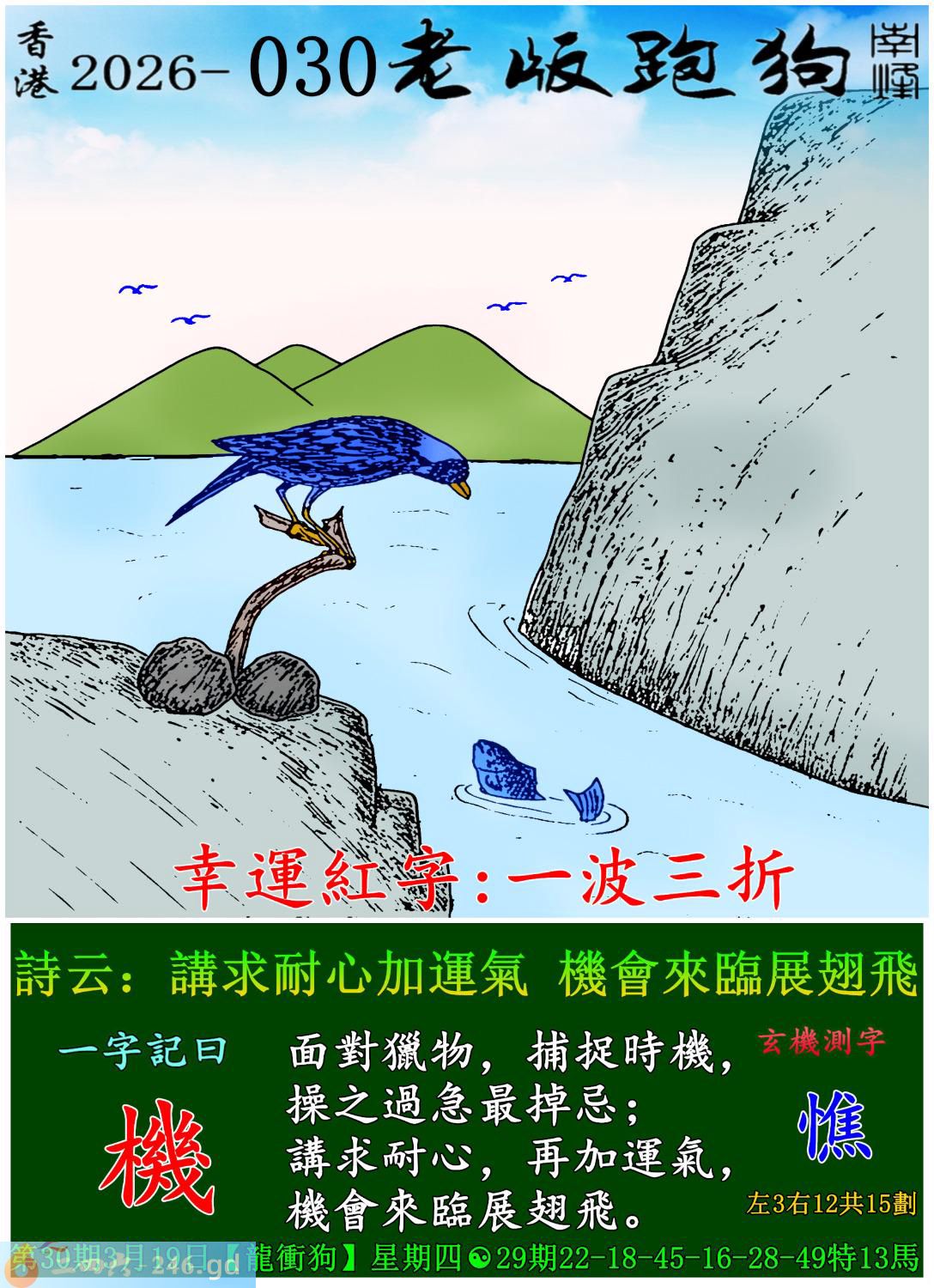 2026年3月19日星期四農歷二月初一長流水龍日沖狗 030期:老版跑狗玄機一字記之曰:【機】 詩云:講求耐心加運氣,機會來臨展翅飛。 面對獵物,捕捉時機,操之過急最掉忌; 講求耐心,再加運氣,機會來臨展翅飛。 玄機測字:《憔》 密圖詩:三個和尚水喝 記:一江春水向東流 特碼大小單雙句:八戒戲嫦娥 今期必中:张飛 030期:特碼歇后語 小孩吃花生-----满把抓 030期正版四字梅花诗:单枪匹马。 030期火车头:烧伤猴。诗:虎龙狗伤,三七一八比短长。 030期香港第一手欲钱料:水。 030期曾道人说:“小团圆?” 030期另版四字梅花诗:羊头狗肉。 030期香港第一手欲钱料:欲钱看古怪的动物。 030期曾道人说:“为什么女人喜欢跳舞”? 030期:二字经:绿红。 030期:汽球是特码 030期智力金壤:塞翁失馬 030期紅字:步罡踏斗 030期暗碼:01283645 030期一語中特:三長兩短 玄機發財圖:翱翔雲間騰雲駕霧圖中明龍紅綠 030期:藏寶圖 新:挂冠目在胜分司 老:角声吹彻小梅花 禁:鸡禁:0尾玄机字《泊》 2026年030期【生活幽默】版 〖打耳光〗 兩個傻子坐在一起,一個傻子突然給了另一個傻子一記重重的耳光。 被打的傻子問:"你是真打還是開玩笑?" 打人的傻子生氣了:"當然是真打!"被打的傻子鬆口氣,接着説:"那就好,幸虧是真打,我是不和人開玩笑的。"