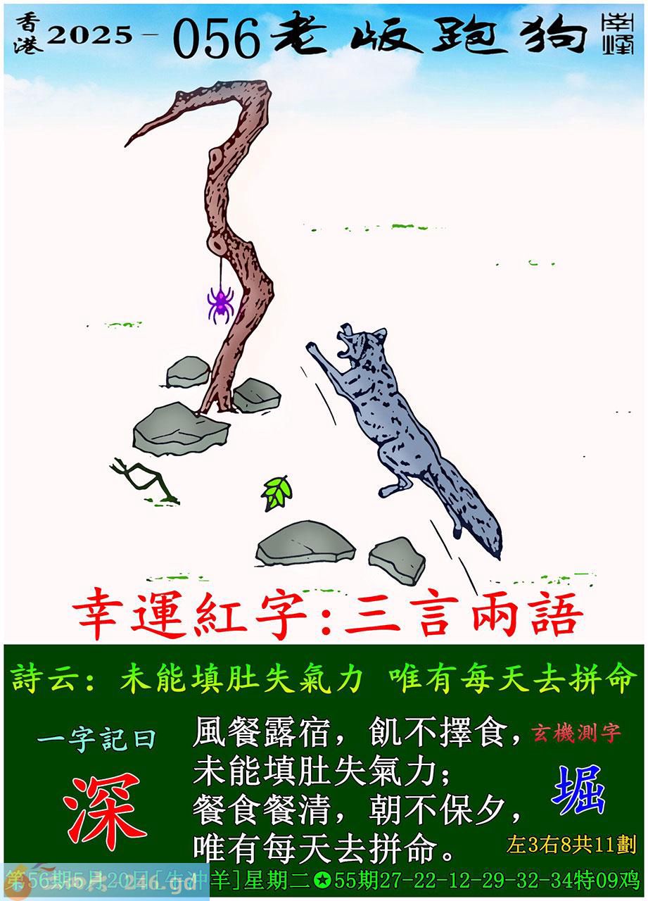 056期老版跑狗一字記之曰:【深】 詩雲:未能填肚失氣力,唯有每天去拼命。