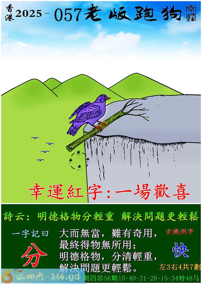 057期老版跑狗一字記之曰:【分】 詩雲:明德格物分輕重,解決問題更輕鬆。