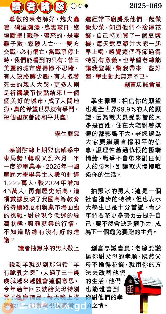 第零六九期讀者論談