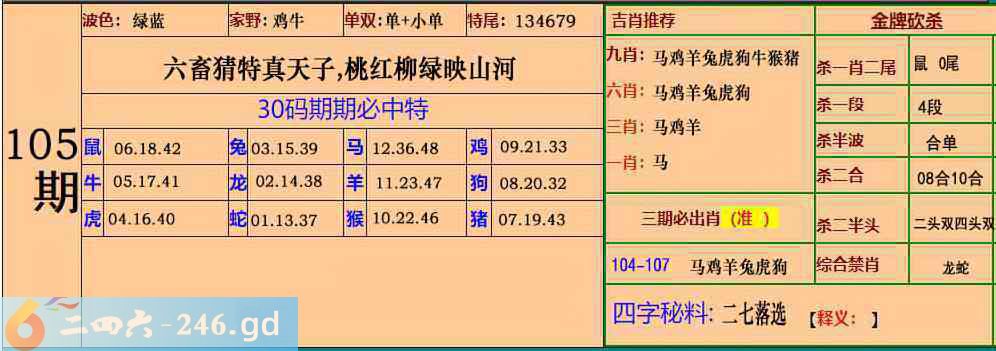 105期:30码期期必中特