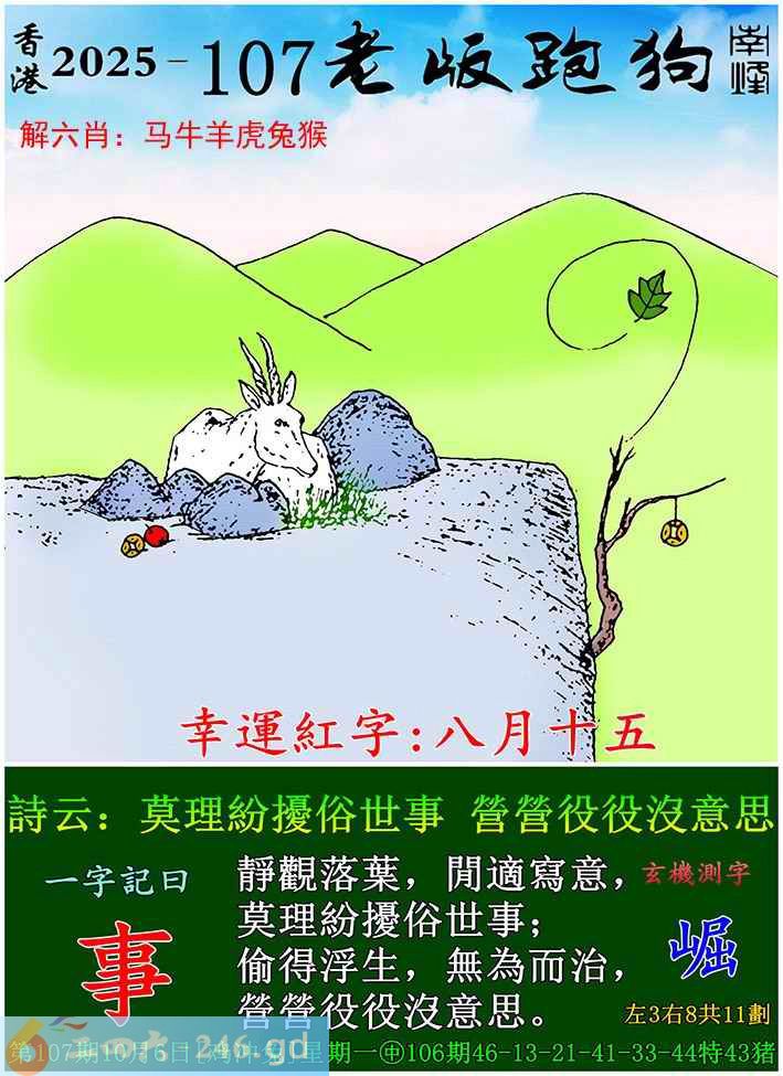 2025106期106期:跑狗玄机(新版老版另版)已更新100%