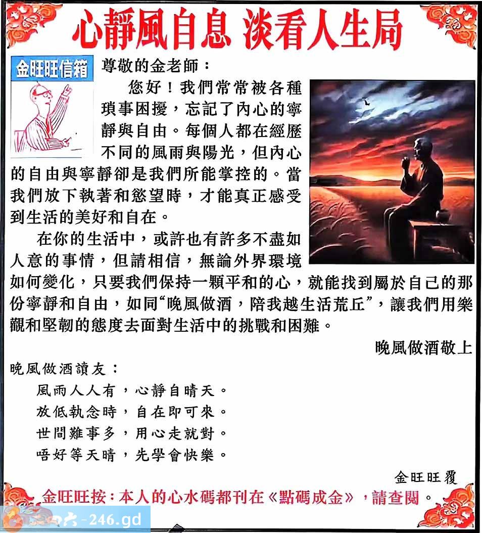 2025130期130期:金旺旺信箱彩民推荐→→《心靜風自息 淡看人生局》