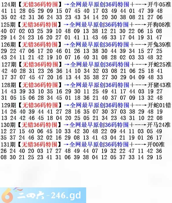 2025132期132期:无错36码