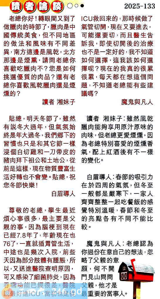 第一三三期讀者論談