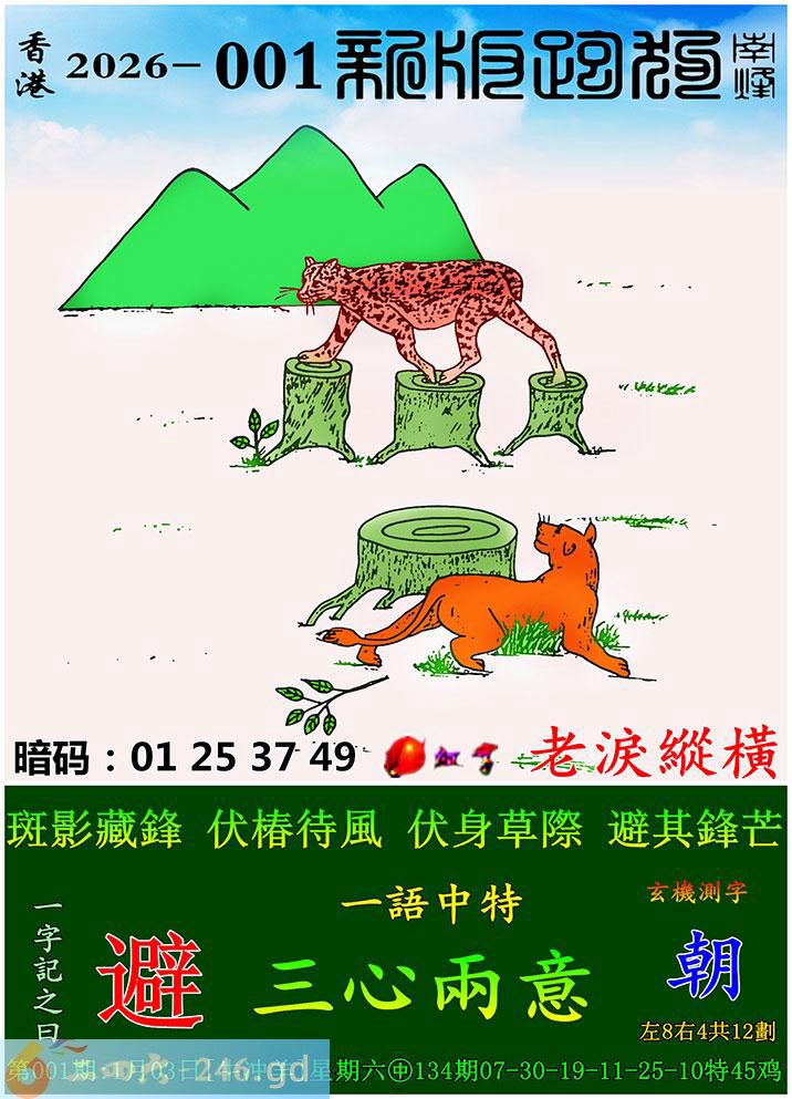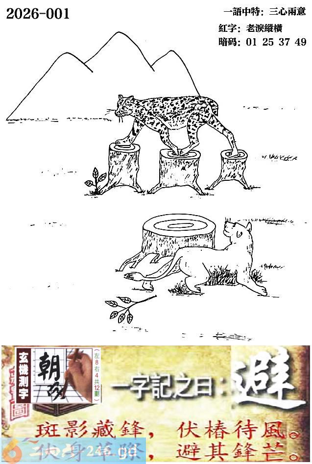 001期跑狗一字記之曰:【避】 斑影藏鋒,伏椿待風。 伏身草際,避其鋒芒。 玄機測字:《朝》 一語中特:三心兩意