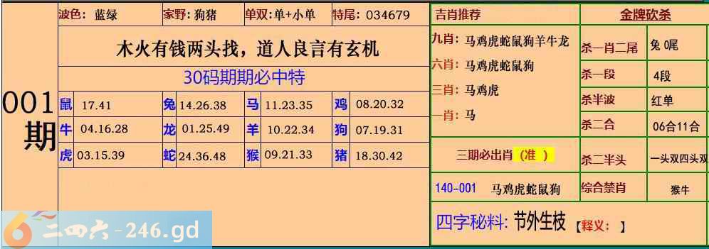 001期:30码期期必中特