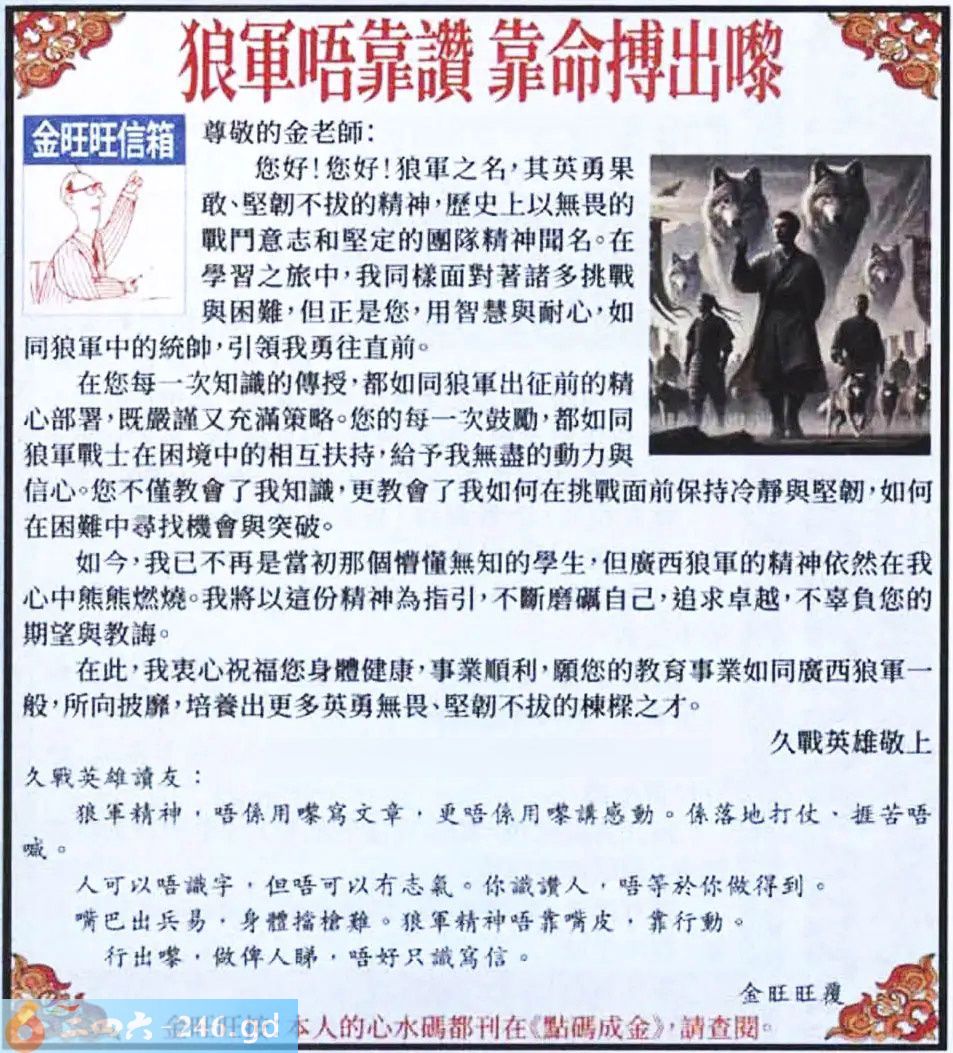 2025002期002期:金旺旺信箱彩民推荐→→《狼軍唔靠讃 靠命搏出嚟》