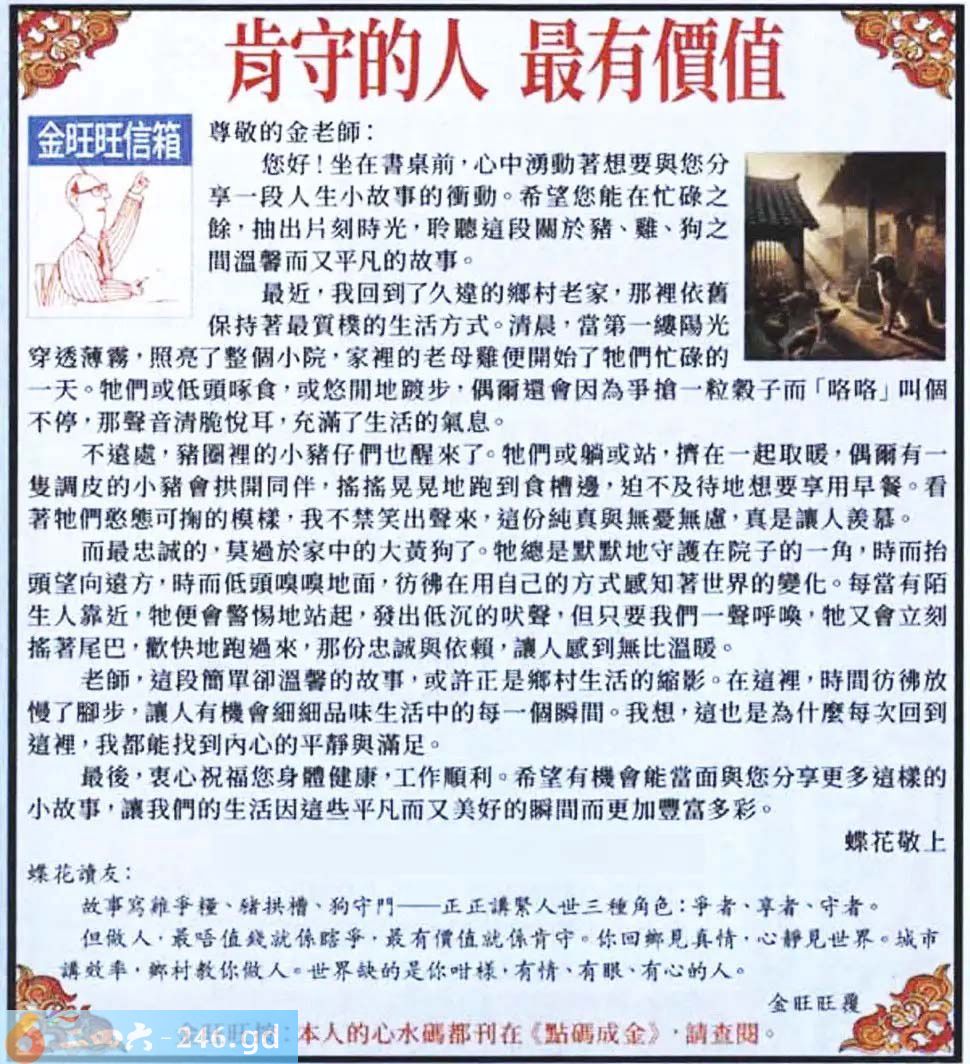2025004期004期:金旺旺信箱彩民推荐→→《肯守的人 最有價值》