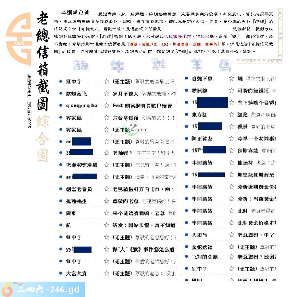 006期:六合皇金句/老总论码/萧公子/林大师/五行夺码/老总信箱截图