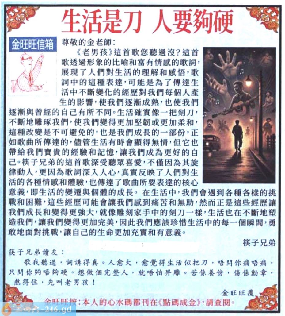 2025019期019期:金旺旺信箱彩民推荐→→《生活是刀 人要夠硬》