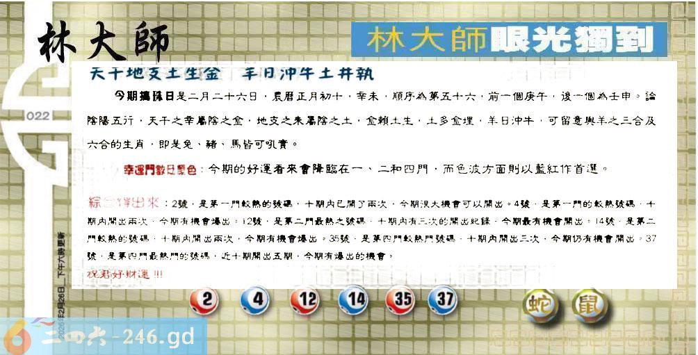 2026023期023期:彩民推荐〖貼信讀者論壇〗