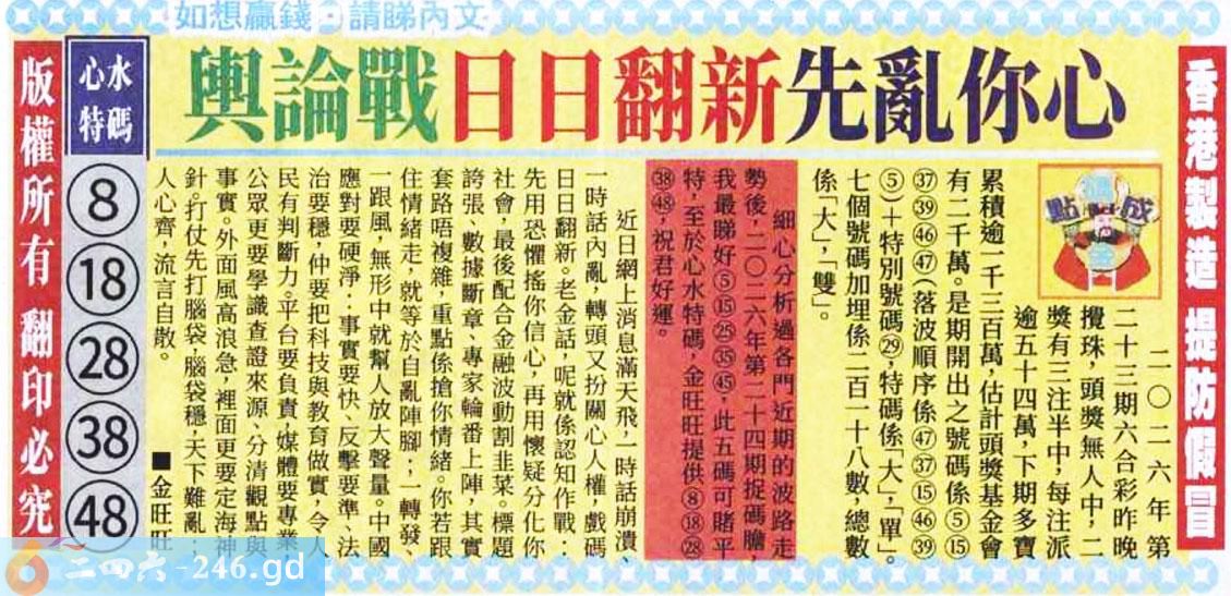 2026024期024期:金旺旺信箱彩民推荐→→《更新中》
