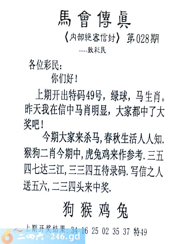 028期:首发推荐:≮馬會傳眞≯→(香港正版)