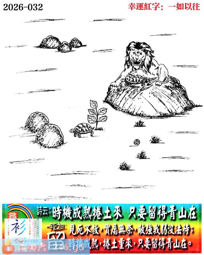 032期老版跑狗一字記之曰:【留】 詩雲:時機成熟捲土來,只要留得青山在。