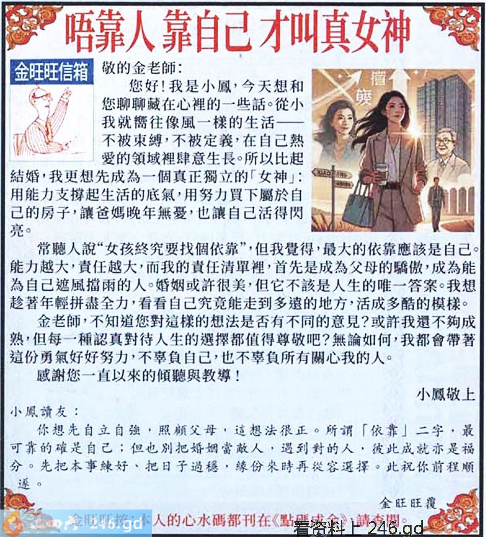 036期:金旺旺信箱彩民推荐→→《唔靠人靠自己 才叫真女神》