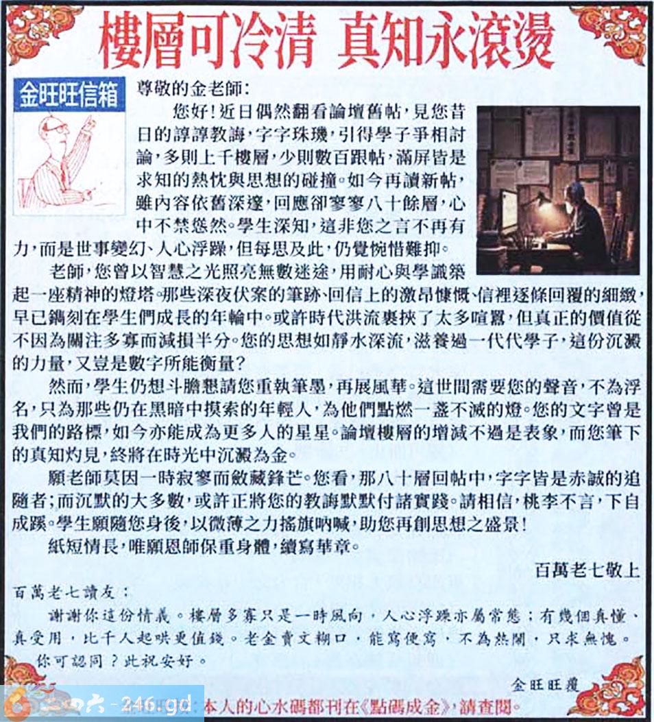 040期:金旺旺信箱彩民推荐→→《樓層可冷清 真知永滾燙》