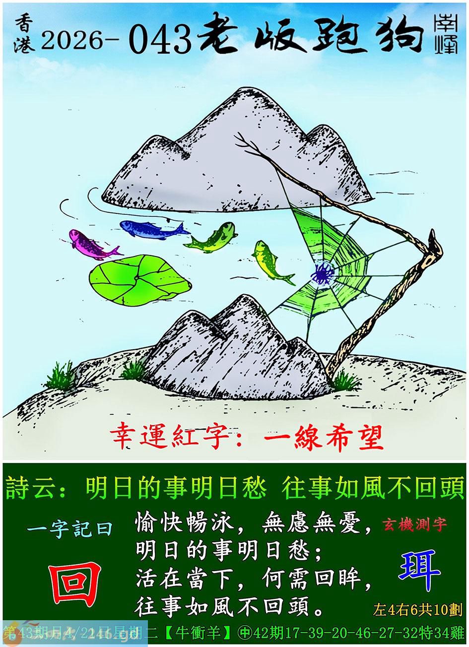043期老版跑狗一字記之曰:【回】 詩雲:明日的事明日愁,往事如風不回頭。